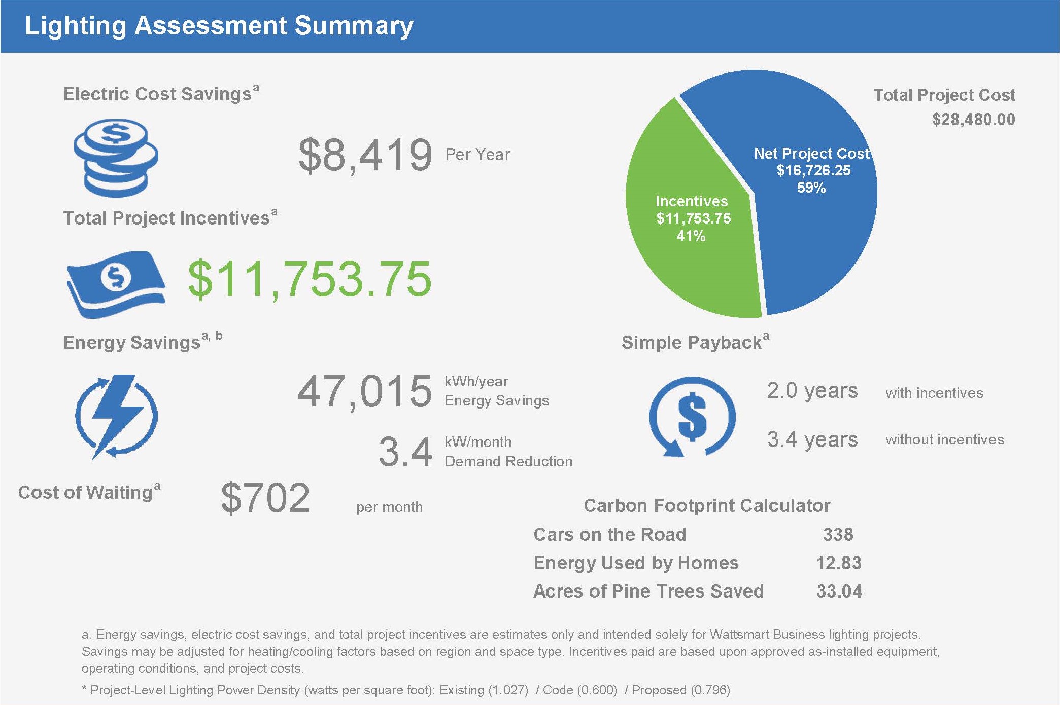 *This is an example and does not reflect actual project, incentive and energy savings amounts for your project. Please contact us for project-specific information.